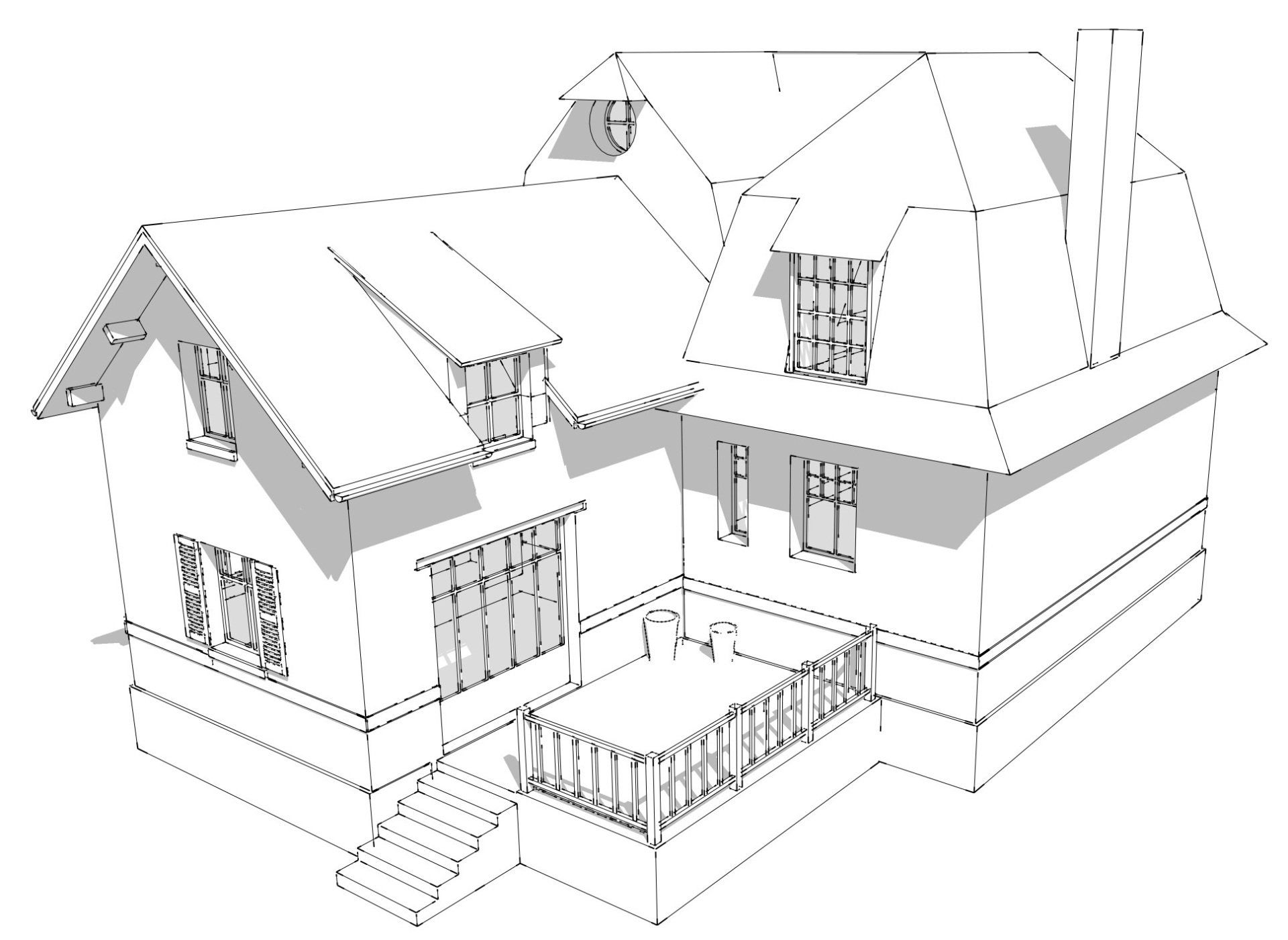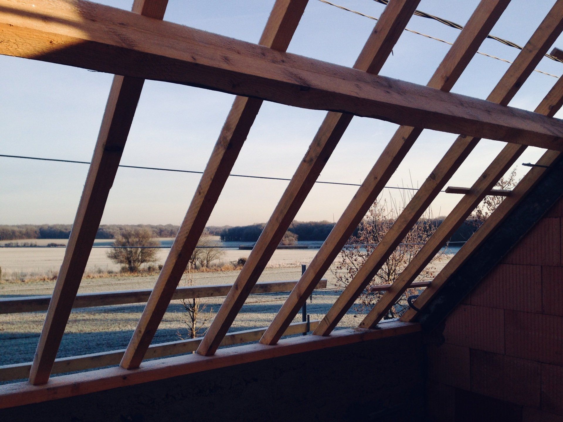Une liaison vitrée relie la chaumière à son atelier. Dans cette liaison vitrée, un nouvel escalier descend au sous-sol.
